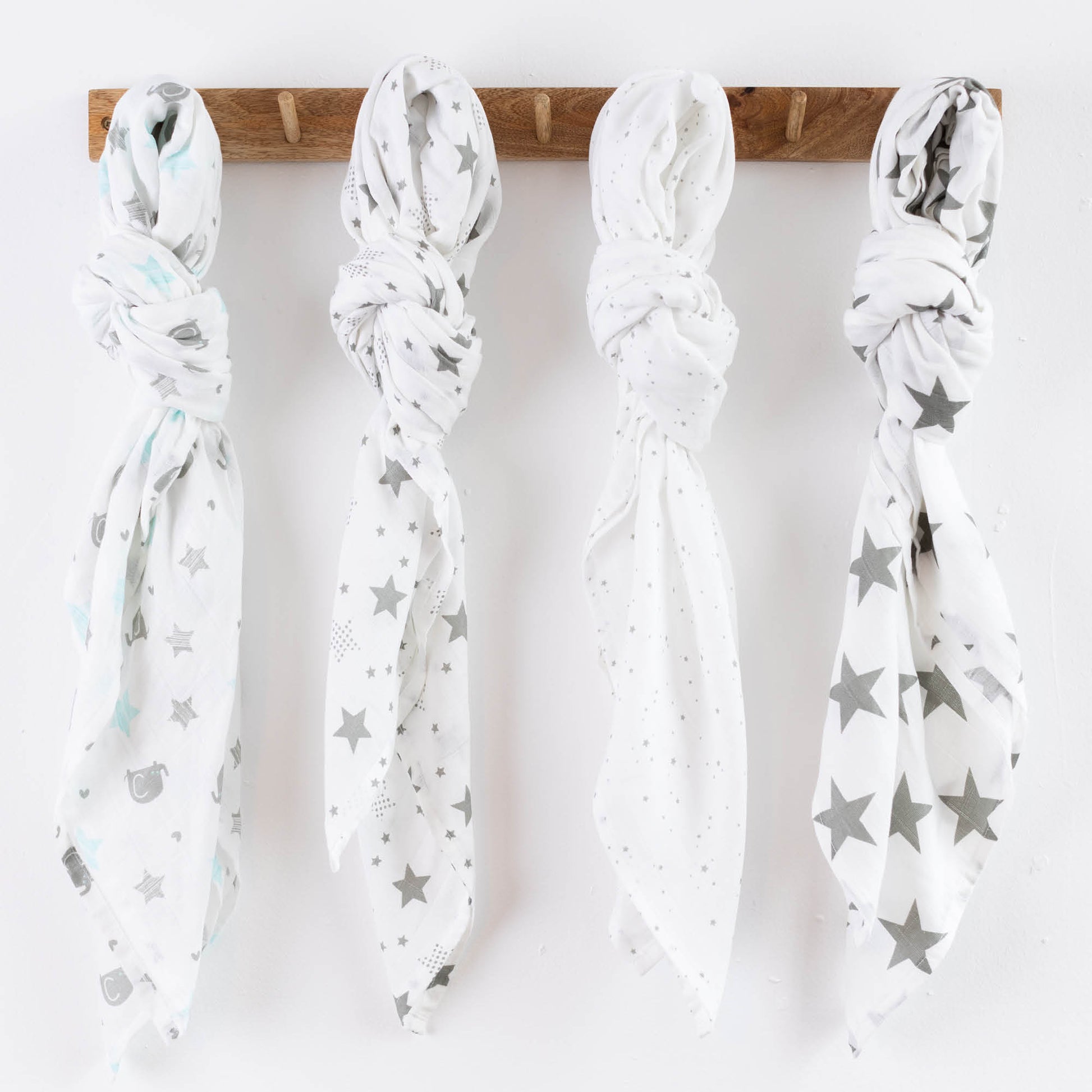 CuddleBug Muslin Cotton Swaddle (4 Pack) - Starry Nights